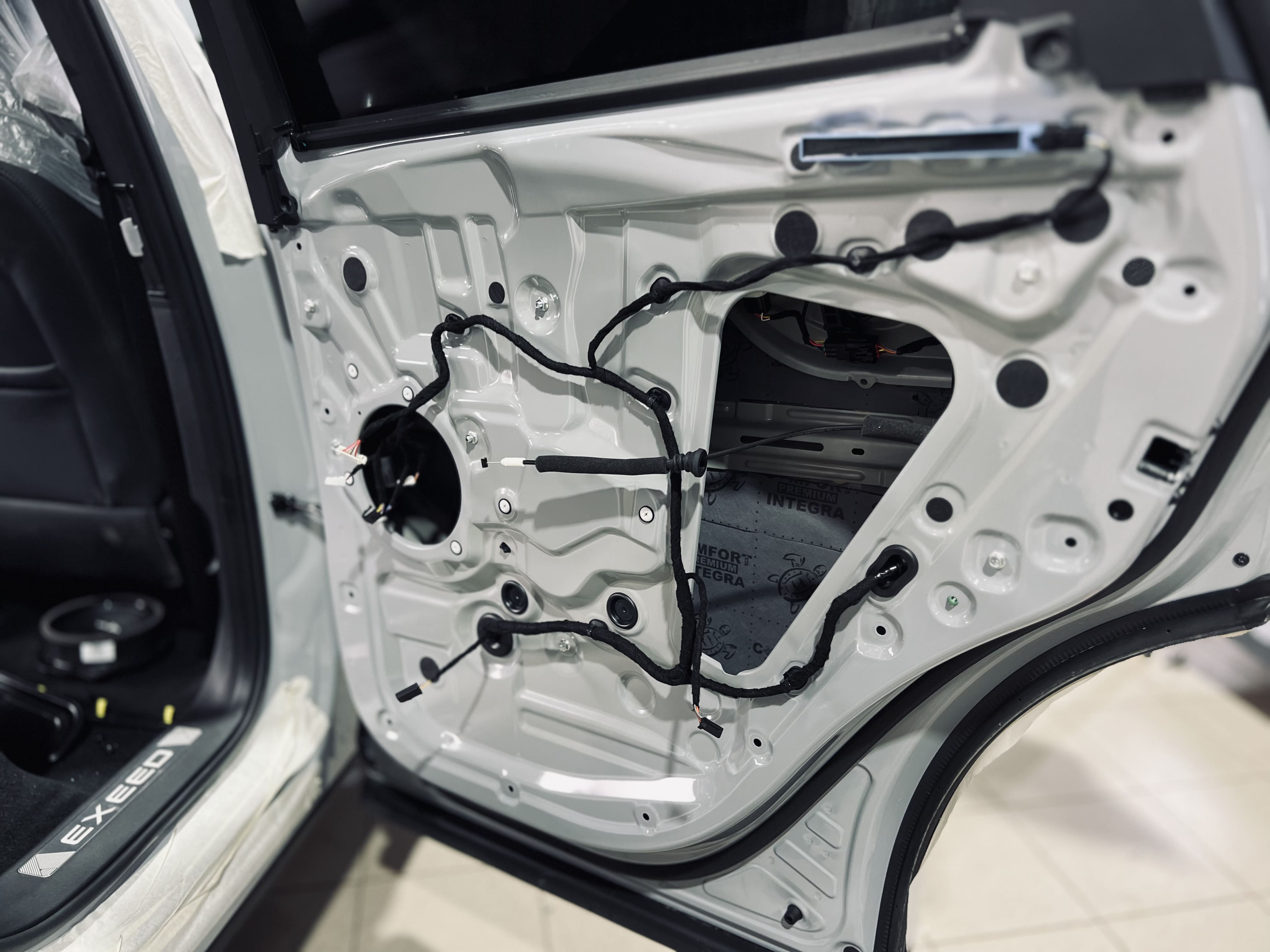 Материалы Comfort Mat обеспечили не только тишину, но и дополнительную теплоизоляцию и защиту кузова от коррозии. Фотографии этапов работы демонстрируют профессионализм и внимание к деталям. Если вы хотите, чтобы ваш EXEED RX стал воплощением премиального комфорта, эта шумоизоляция – идеальный выбор!
