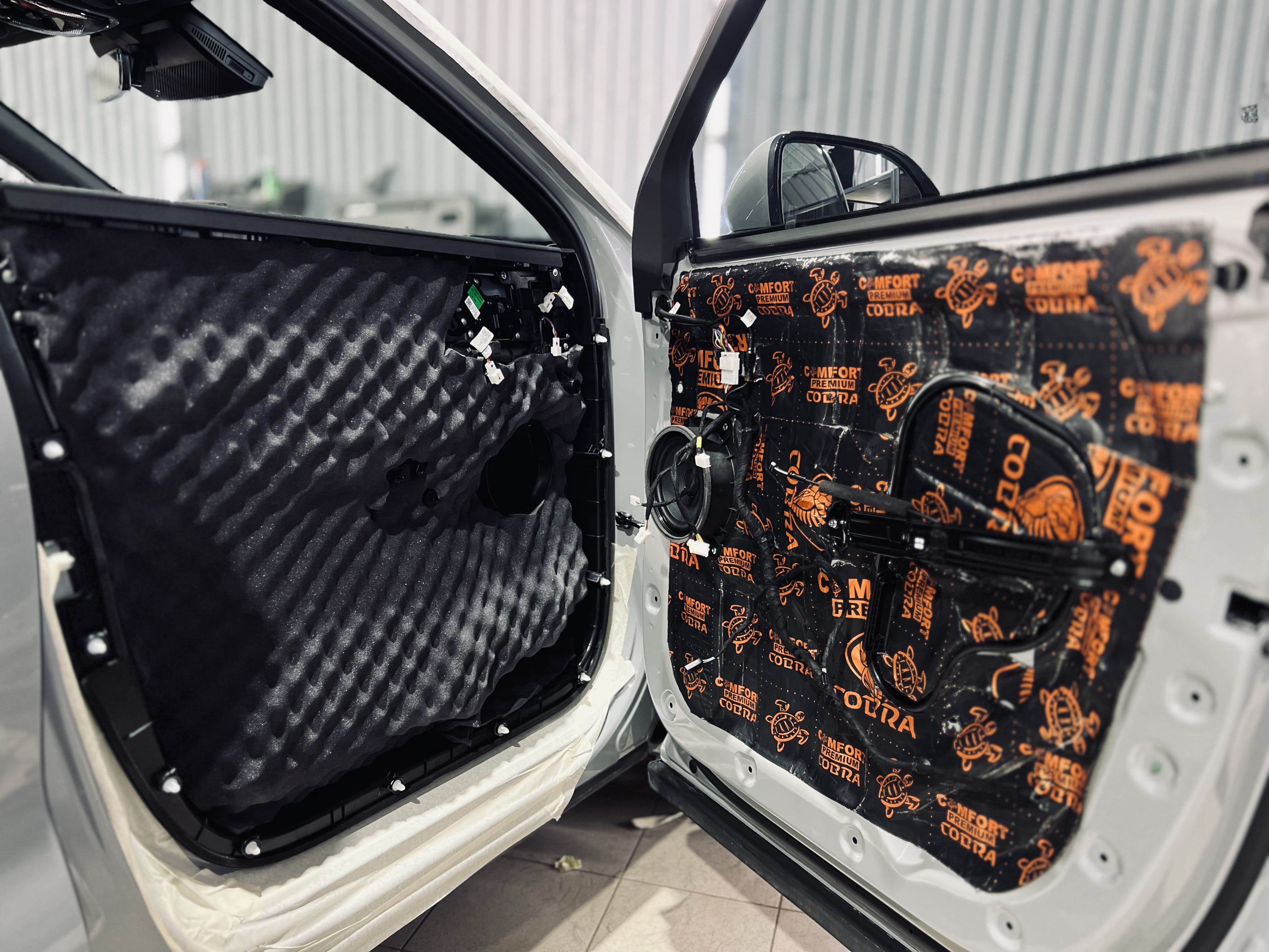 Двери и дверь багажника – важные элементы шумоизоляции, через которые проникают звуки улицы и ветра. Мы обработали их в несколько слоев, чтобы обеспечить тишину и улучшить акустику.