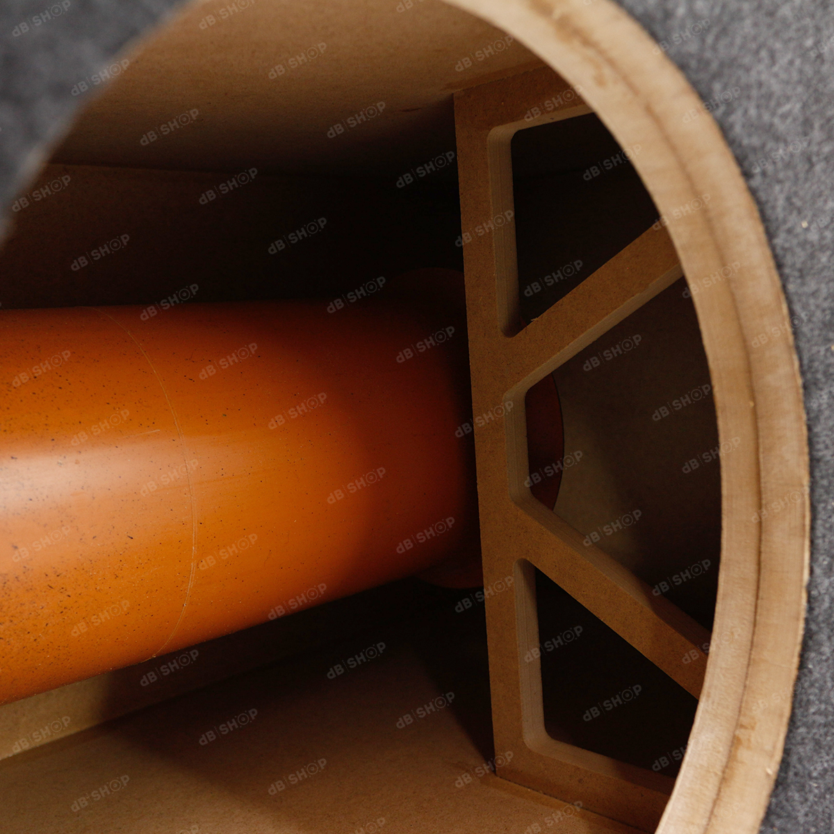 Короб для сабвуфера 12" ФИ труба (в бок, D110, лого DBShop, мдф)