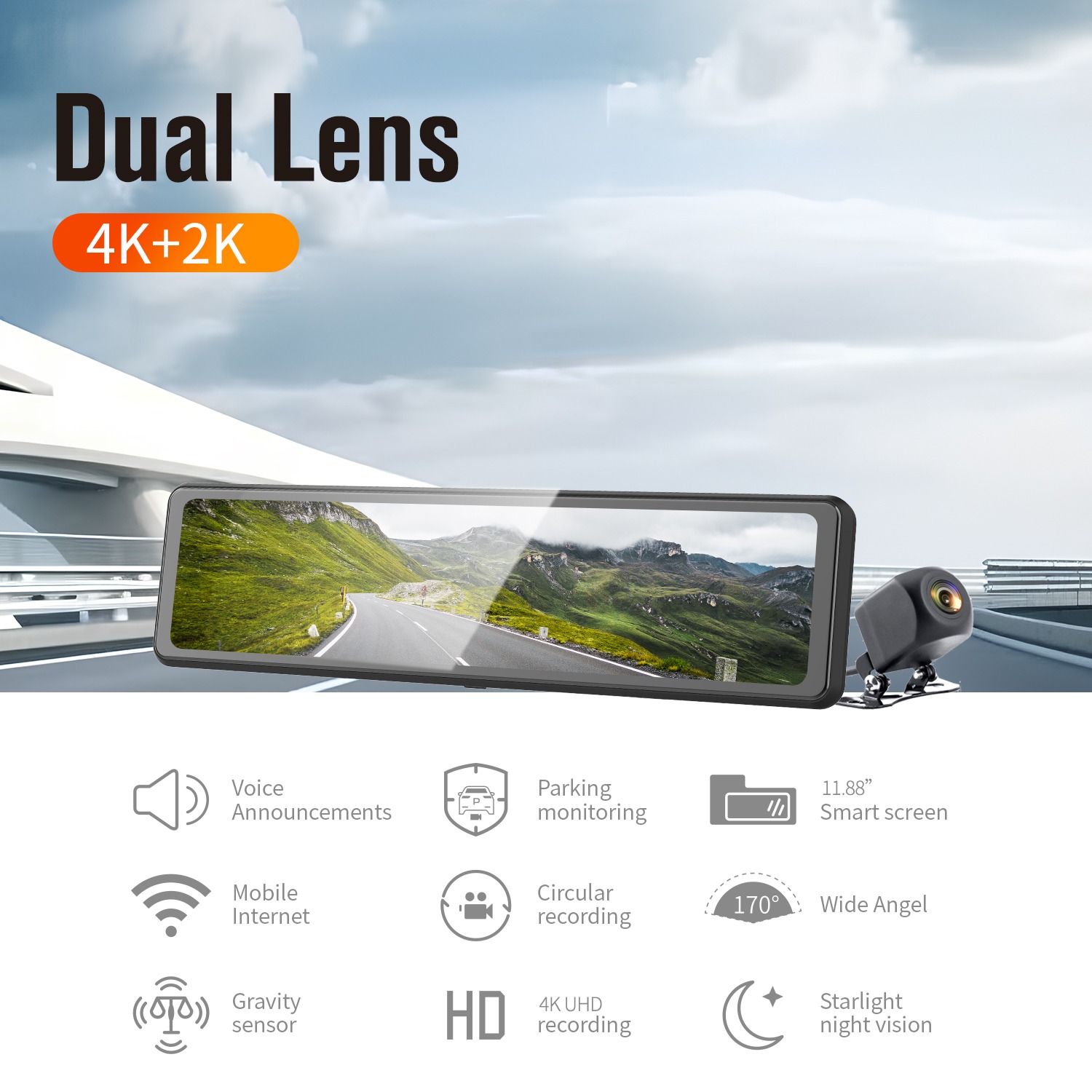 Видеорегистратор-зеркало Fisang K10 с камерой заднего вида